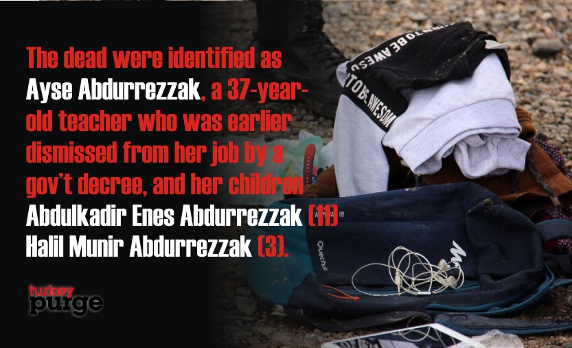 Ayşe Abdurrezzak, a 37-year-old teacher who was dismissed from her job after a coup attempt in July 126, and her children Abdulkadir Enes Abdurrezzak (11) and Halil Munir Abdurrezzak (3) died on Feb. 13, 2018 after a boat carrying a group of eight capsized in the Maritsa River.